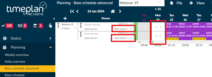 6. Deploy all staff and select the correct start date and start week. Remember that two people who are scheduled to work completely in parallel should also have weeks that follow each other. This means that these two people can have different start weeks if they have different start dates on their schedule.