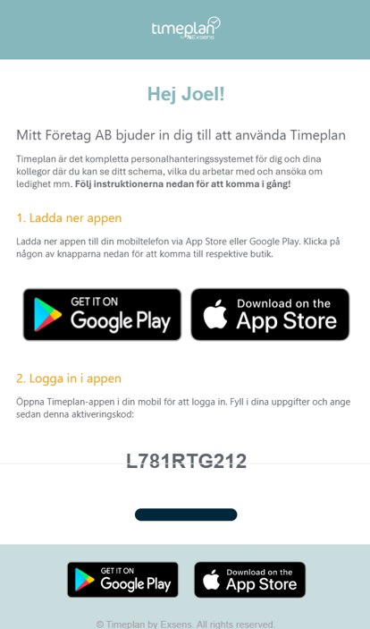 6. Nedanstående inbjudan skickas till medarbetaren.