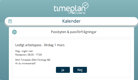 Om företaget tillåter passbyten så kan man göra förfrågningar om detta via kalendern.